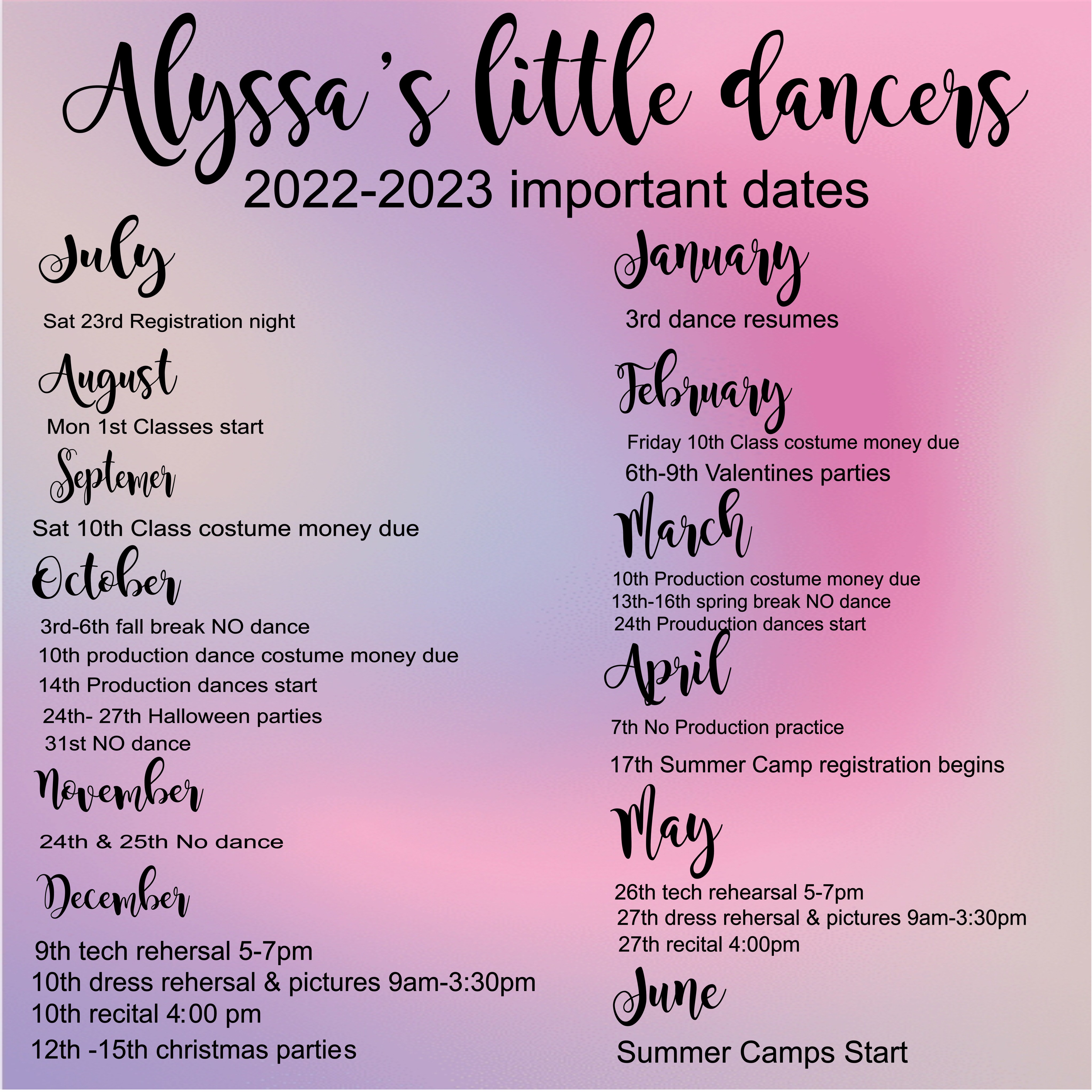 We will have a registration night on July 23rd from 5-7pm if you want to come in person to check out the space, meet me & get your dancer fitted for shoes.